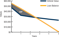 The value of your new or pre-owned vehicle starts to depreciate the moment you take possession of it. If a total loss occurs, you are personally responsible for the difference between what you still owe on your vehicle and the primary insurance carrier’s settlement amount, commonly referred to as the “GAP.”